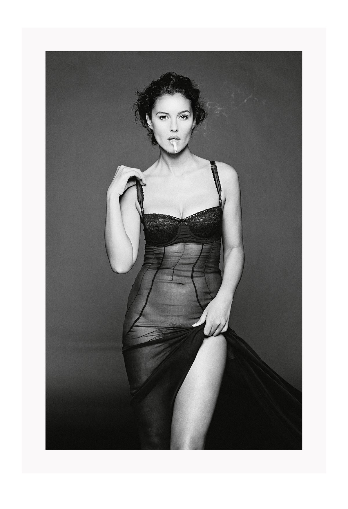 Sexy lady woman throwing sand on a beach in black and white, coastal ocean. Modern bedroom with a wooden dresser, decorative items, and a framed picture on the wall.